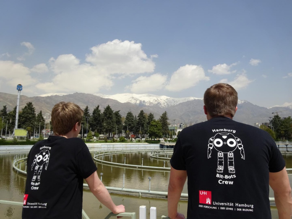 Tag vier bei den Iran Open ist angebrochen, Zeit für ein paar Impressionen vom gesamten Wettbewerb. Neben uns Hochschulstudierenden, den sogenannten „Majors“ ist auch ein großer Teil des Wettbewerbs für Schülerinnen und Schüler, die „Juniors“. Dadurch gibt es viele verschiedene Wettkämpfe in den Hallen zu sehen, aber wir versuchen zwischendurch auch mal das tolle Wetter draußen zu genießen.