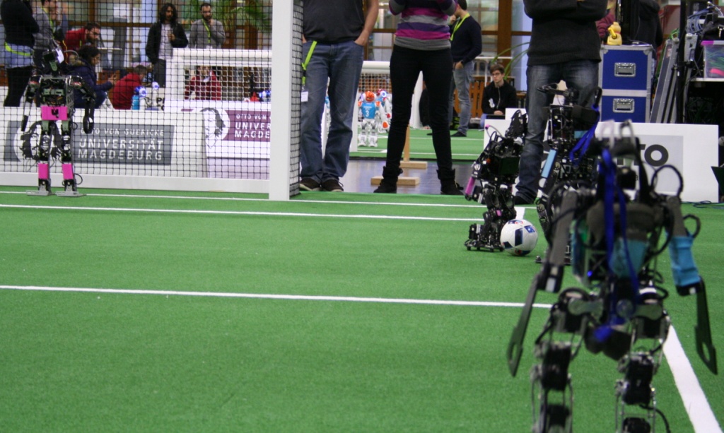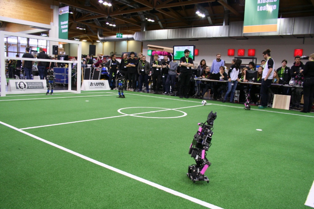 Um 16 Uhr fand das Erste statt, bei dem der Rhoban Football Club zusammen mit den WF Wolves gegen den 1. RFC Berlin (früher FUmanoids) und die Hamburg Bitbots spielten.