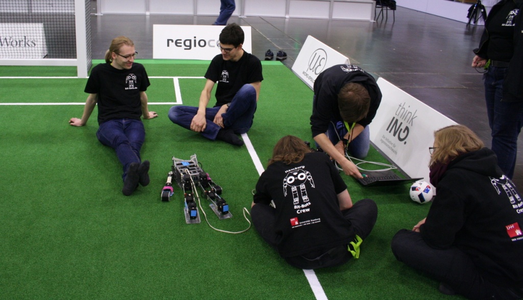 We made sure the software was running correctly on all robots so that they are able to play. We worked on Minibot’s walking, and transferred existing motion sequences of Minibot standing up to the new system. Also we put plates under Minibot’s feet, to expand the foot area.